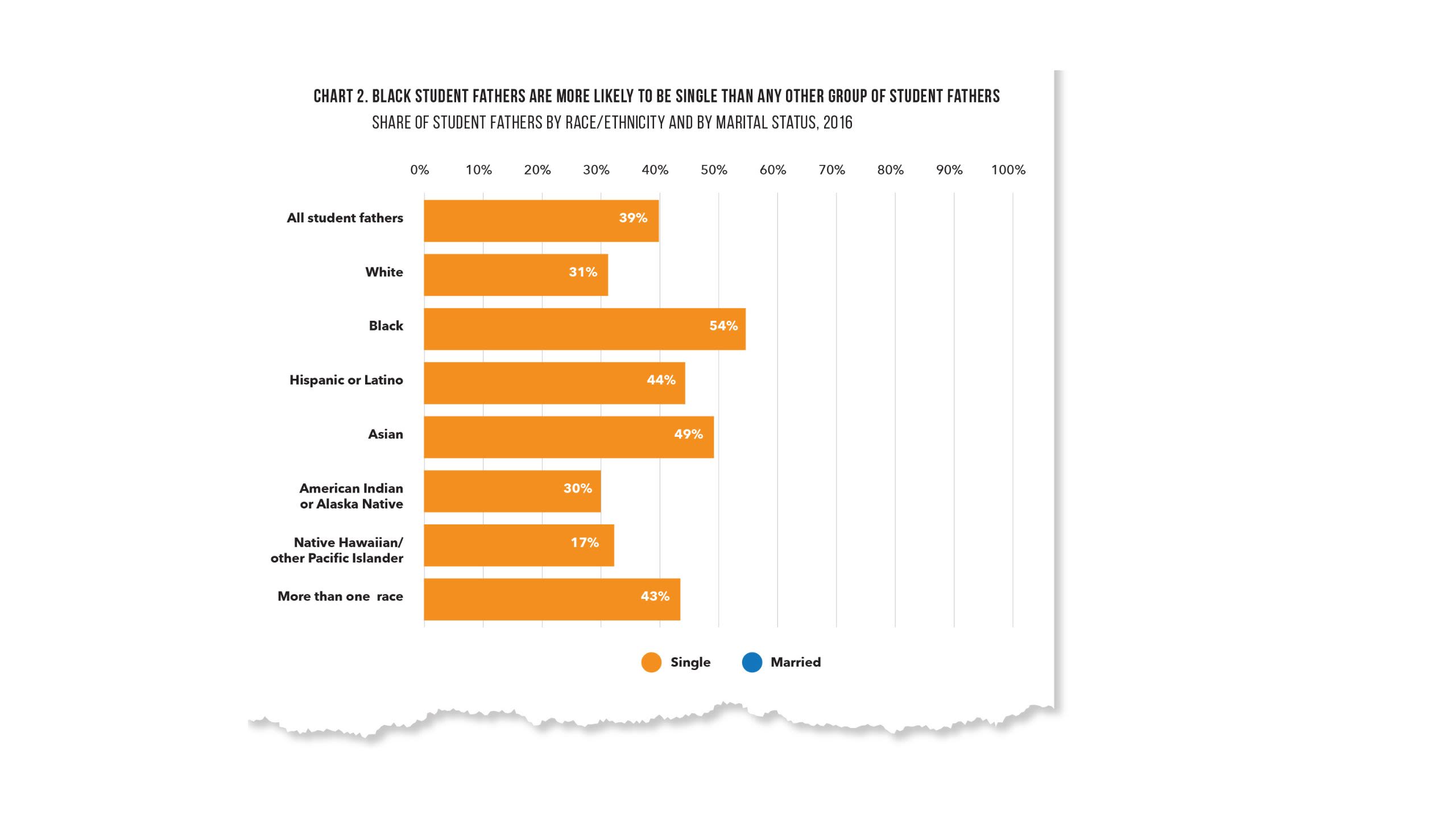 - Black men are a distinct group among student fathers. While student fathers overall are more likely to be married and student mothers are more likely to be single, Black student fathers are more likely to be single than married. Black student fathers also have the highest rates of stopping out of college across race and gender and experience especially high levels of basic needs insecurity.
